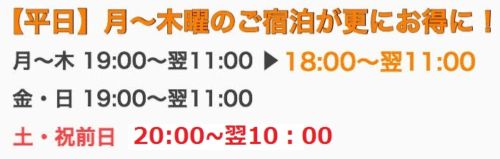 土曜日・祝前日のご宿泊が20時からご利用いただけるようになりました。